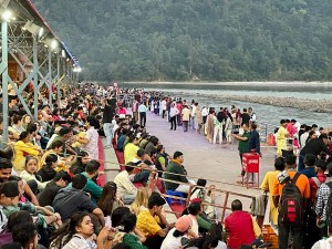 Ganga Aarti – The Ganga Aarti at Triveni Ghat has become an attraction at Rishikesh and an important item on the tourist itinerary. The Triveni Ghat management has built a pavilion for devotees to attend the Aarti every day during sunrise and sunset. The sunset Aarti is attended by thousands of devotees, and tourists. It is a divine experience. The evening Aarti timings vary between 5:30 PM to 7 PM as per the season. A good idea is to start early for Triveni ghat since the way to the ghat passes through a crowded market having narrow roads leading to frequent traffic jams. Grab a seat at the pavilion by 5 PM for a great view of the Aarti. Few other Ghats such as the Parmarth Niketan Ghat near Janki Jhula also do daily Ganga Aarti.